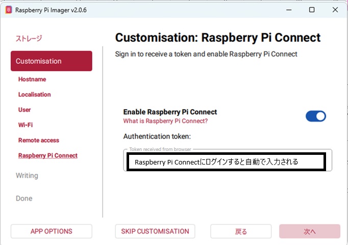 Raspberry Pi Connectにログインして戻ってくると自動でtokenが設定されます。