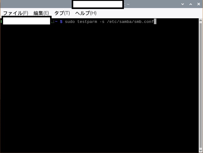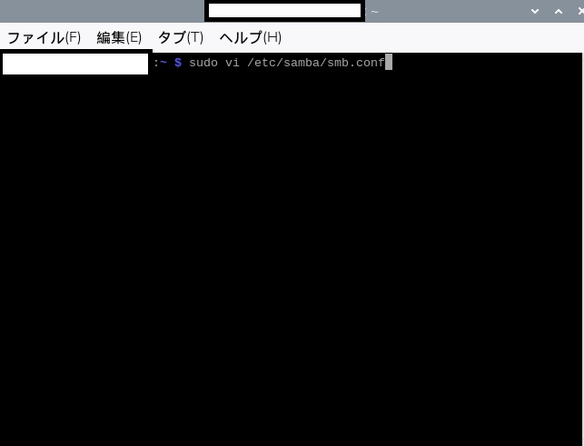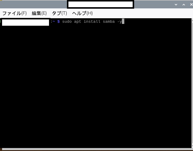 ※ いったんHDは外しておきます。 - 下記のコマンドを実行し、Sambaをインストールします。