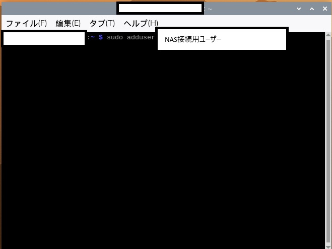 sudo adduser NAS接続用ユーザー