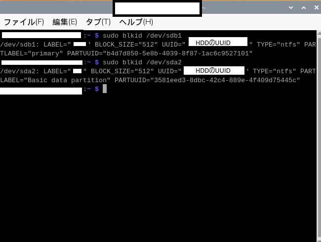 - sudo blkid /dev/**(↑で確認したDevice)