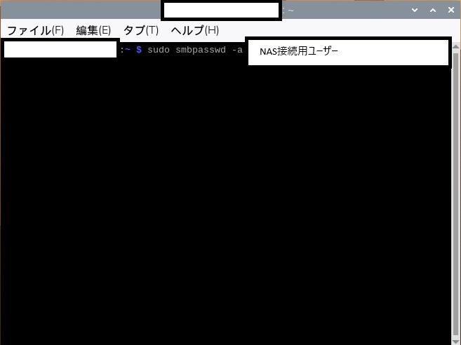 sudo smbpasswd -a NAS用接続ユーザー